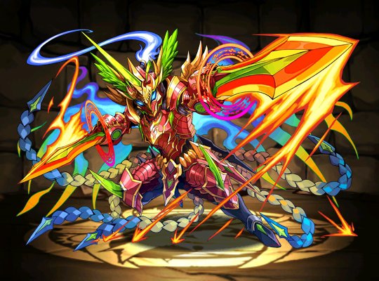 自分と同じ属性のドロップを4個消すと攻撃力がアップし、敵2体に攻撃をする |